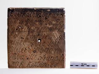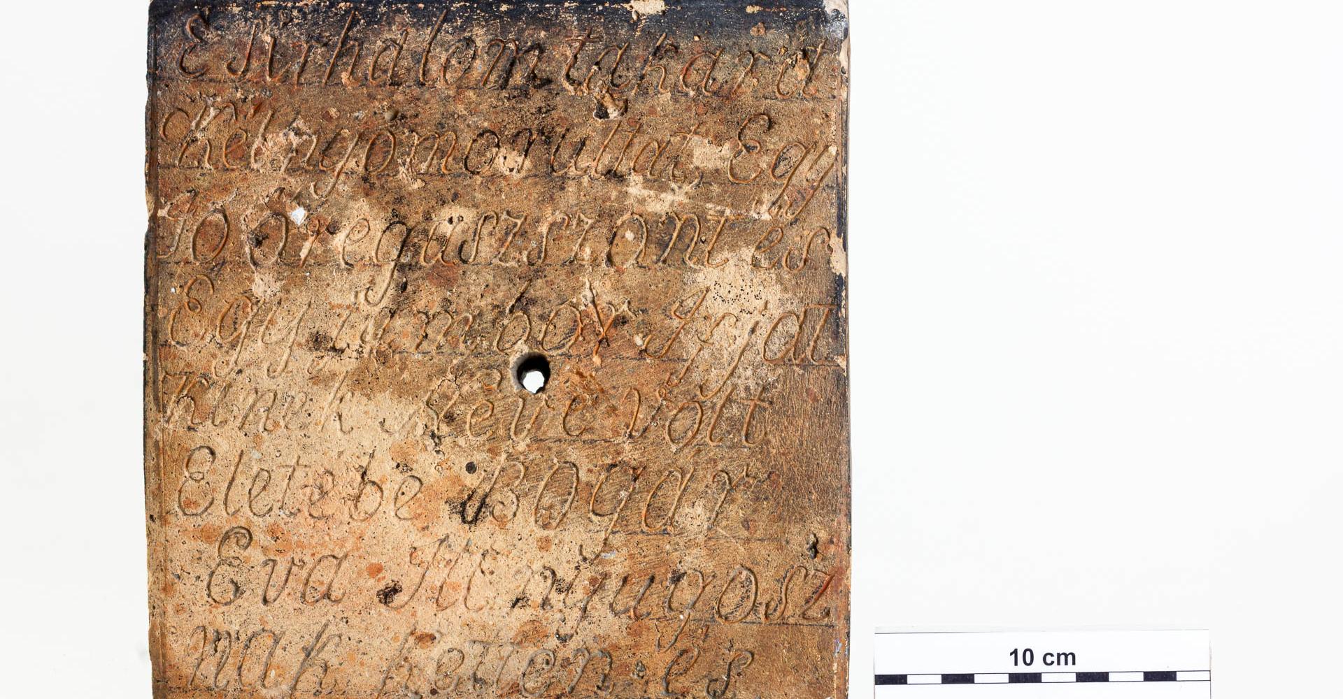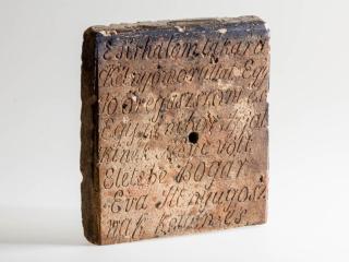 Voltak olyan módon elkészített fejfák is, melyek felirata nem magára a fejfára volt felvésve, hanem egy külön deszkára, vagy mint esetünkben, téglába volt bekarcolva, és azt erősítették fel a fejfára. Az ilyen, fazekassal- vagy téglaégető mesterrel készített felirat praktikusabb volt, az időtállósága miatt.