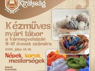 A vármegyeházi kézműves nyári táborban a gyerekek különféle kézműves technikákkal ismerkedtek meg: gyapjú fonalból kis erszényt szőttek karmatyúfán, golyókat nemezeltek, melyeket fagyöngyökkel kombináltak, így készítették el a színes kulcstartókat. Móhr Szilvia restaurátor és Palkó Edina múzeumpedagógus segítségével római kori mécseseket formáztak, karcolással díszítettek és festettek, majd körmöcske segítségével fonalkarkötők készültek, kitűzőket varrtak a gyerekek gombok és színes hímzőfonalak felhasználásával. A bonyhádi Völgységi Múzeumban a bútorfestést próbálták ki, majd megnézték a Tűzoltó Múzeumot és az Óvoda Múzeumot is Bonyhádon. A Binder Bori múzeumpedagógus által vezetett tábor részvevői a hét további részében a Petrics Mézeskalács Múzeumban szilvás- barackos mézes lepénykét gyúrtak, sütöttek majd jóízűen elfogyasztottak, az MNL Tolna Vármegyei Levéltárában a családi címerekkel ismerkedtek és saját címert terveztek, az utolsó napon pedig Dr.Vizi Márta mutatta be a gyerekeknek a Múzeum 130 című kiállítást, majd a Sárköz gazdag hímzésvilágából ismertek meg néhány motívumot.