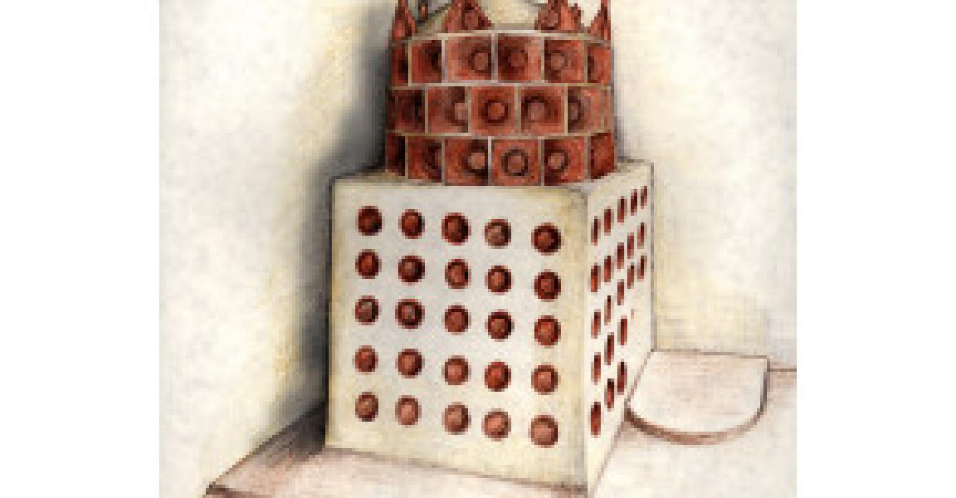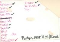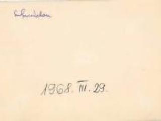 A négyzet formájú, mázatlan kályhacsempe előlapján egy csúcsára állított négyzetben látható egy sajátos ábrázolás. Egy, a négyzet alsó sarkából kinövő virágcsokor tetején egy öt tornyú várkastély látható. A várkastély alapjánál bal oldalt G, jobb oldalánál KI betűk vannak. A középső toronytól balra lévő torony sisakja mellett kétoldalt H és W betűk látszanak.