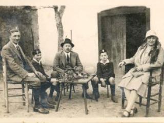Az egyik első felvétel 1931 áprilisában, a Benedek-völgyi szőlőben lévő tanya előtt készült. Molnárék egy kis asztal körül ülnek. Sorrendben balról egy ismeretlen férfi, majd Molnár Dénes és édesapja, mellettük Miklós és édesanyja. Az asztalon teli poharak, virágzó gyümölcsfaágak, mellettük egy női kalap. Ebből következtethetünk arra, hogy a fényképezőgépen a gombot a női kalap tulajdonosa nyomta meg. A két Molnár fiút, Dénest és Miklóst a Garay Gimnázium egyenruhájában és sapkájában látjuk, édesanyjuk elegáns ruháján rókaprém-gallér, ami az Anyasirató című novella motívumává vált.
