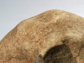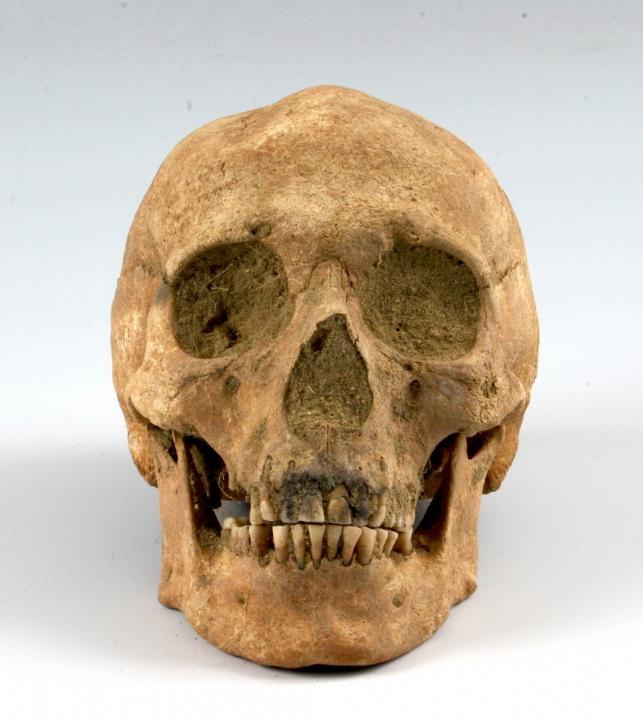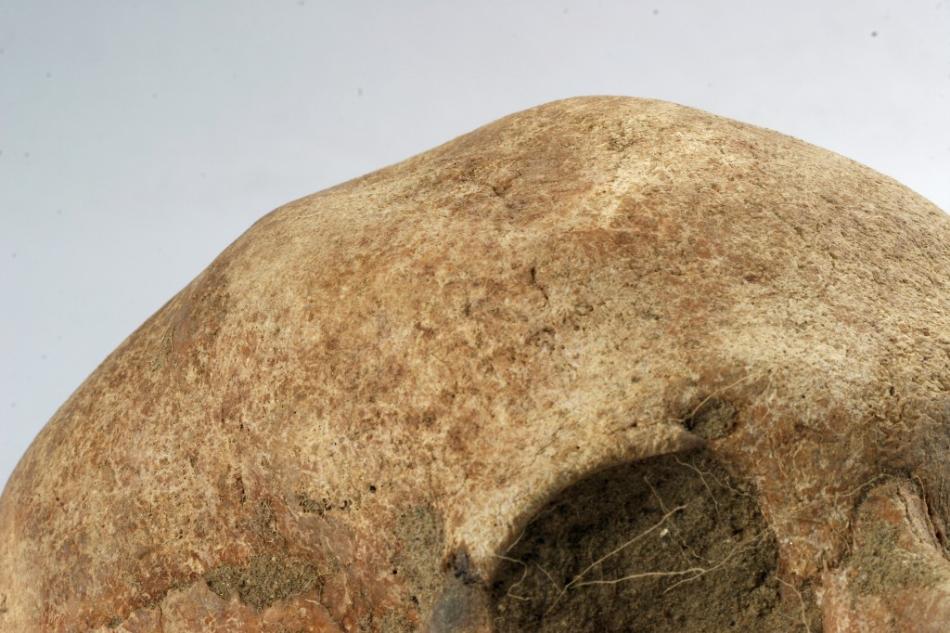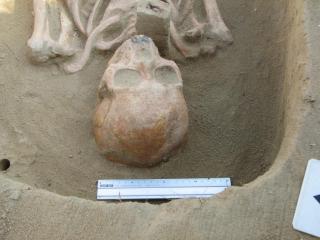 A bemutatott koponya Kajdacs község Rókadomb nevű lelőhelyen került feltárásra 2008-ban. A Sárbogárd-Bátaszék vasútvonal által kettévágott domb rézsűjében lakossági bejelentést követően végzett terepbejárása során figyelt meg két kilógó combcsont-töredéket K. Németh András 2007-ben. A leletmentő ásatást a következő év tavaszán végeztük el, valamint ugyanekkor sikeres fémdetektoros gyűjtés is zajlott. Az egykori felszíntől 81 cm mélyen lévő, háton fekvő, nyújtott helyzetű, délnyugat – északkelet tájolású csontváz felső részét sikerült megmenteni. A sírban a következő leletek voltak: vascsat, csiholó, kovapenge, feltehetően II. Béla kori (1131-1141) ún. anonim denár. A fogakon ezüstös oxidáció nyoma látszott, amely jó eséllyel egy elmállott halotti obulustól eredhetett. Már a bontás során feltűnt a homlokcsont jobboldalán egy gyógyult traumatikus elváltozás nyoma.