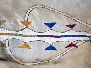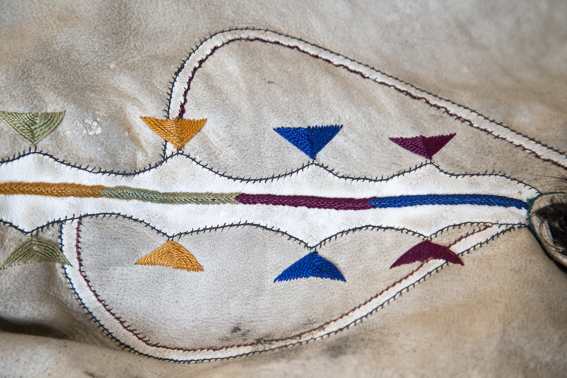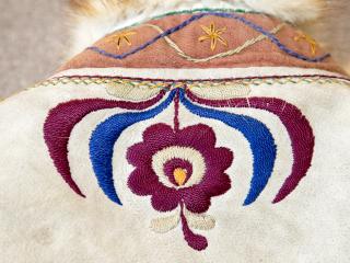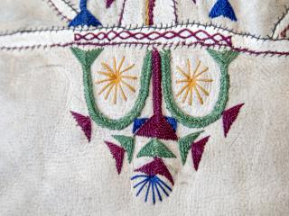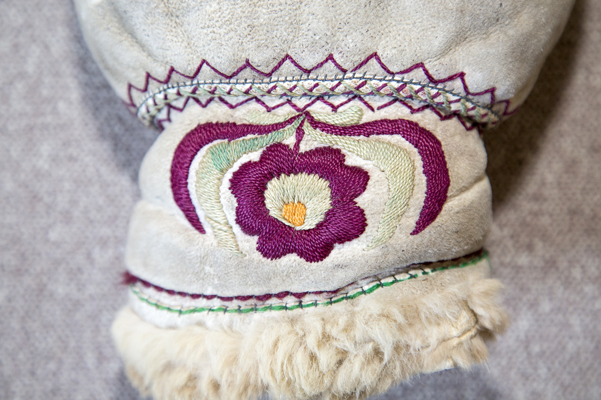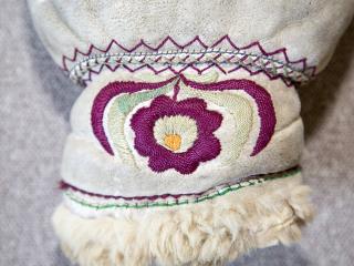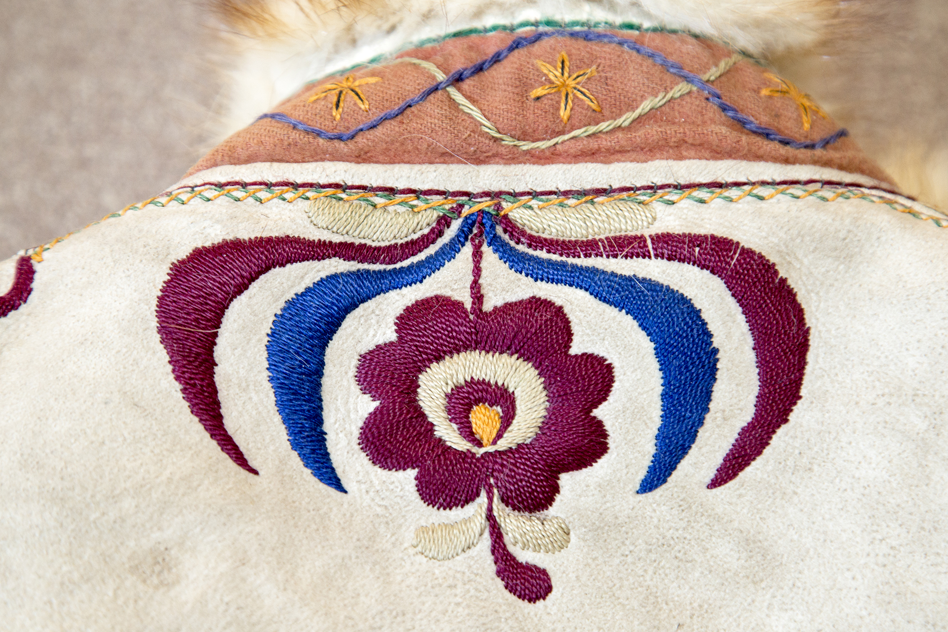 Bukovinai székely viseleti darab. Hadikfalván készült 1930 körül, Kóka István nevű szűcs készítette. A hazatelepítés után már nem nagyon viselték, mert itt nem volt divat, és kinevették őket érte. Megvásárlásáig a szobában, a sublótban tartották. Hosszú barnaszőrű birka bőréből készült, a szőrt megnyírták. Bőrrátétes, elején majdnem végig és vállán dúsan hímzett. Ujján és nyakánál finomabb prémmel (mókus?) szegve, ez kopottas. Néhány helyen hullik a szőre. A bukovinai székely népviselet kiemelkedően díszes darabja volt a bunda, úgy a férfi, mint a női viseletben.