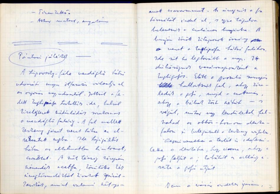 A napló értelmezését Szolláth Dávid Végleges változatok a hagyatékból tanulmányából idézzük: »A kötet körülbelül első száz oldalát kitevő jegyzetanyag családtörténeti és gyerekkori emlékek többé-kevésbé összefüggő felidézése. Ezek a jegyzetek a negyvenes és az ötvenes évek fordulóján keletkeztek, mégis, a nyersanyagnak a legnagyobb része csak a kései novellákban bukkan fel újra. Nemcsak kész (megírt vagy máshonnan átvett) mondatok lapultak évtizedeken keresztül a naplók lapjain, hanem nevek, történetek, felvázolt jelenetsorok, művek “forgatókönyvei” is. Tanulságos megvizsgálni például a 82–83. oldalon található, harmincnégy jelenetet címszószerűen felsoroló forgatókönyvet, amely az első, 1948–1955 közötti naplóból (pontosabban egy a naplóba valamivel később beragasztott lapról) került elő. A vázlatpontok a naplóban többnyire kifejtettebb formában elbeszélt történetekre utalnak. Egy-két kivételtől eltekintve mindegyik itt felsorolt jelenet felbukkan, szétszóródva persze, a hetvenes-kilencvenes évek műveiben. A forgatókönyv tükrözi a tervezett, de meg nem írt regény (vagy novella?) jelenetezésének módját is, és tanúskodik Mészöly korai formakereséseiről. Talán nem túlzás azt állítani, hogy a forgatókönyv történeti linearitást lazító, kontrasztív vágástechnikája a Nyomozás 1–4., az Alakulások vagy a Filmidő-montázsait és az Anno, a Térkép Aliscáról mozaikos történelmi elbeszélésmódját előlegezi.