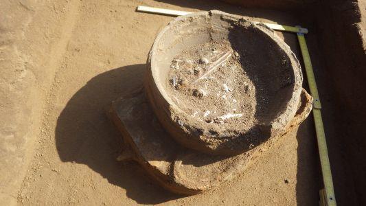 A Fadd északi harmadában, a sertésteleptől nyugatra lévő dombvonulaton lévő lelőhely e sorok írójának szakdolgozati terepbejárásakor vált ismertté még az 1990-es években, amikor is az erősen erodálódó dombtetőn sorozatosan kerültek felszínre csontvázas és hamvasztásos kelta kori sírok a szántás során. Az elmúlt években a Tolna megyei La Tène kori (a vaskor második, a keltákhoz köthető korszakának a szakirodalomban használatos, egy jelentős svájci lelőhelyre utaló elnevezése) lelőhelyek szisztematikus felderítését és kutatását célzó együttműködés keretében az ELTE Régészettudományi Intézetének Archeometriai és Régészetmódszertani Tanszékét vezető dr. Czajlik Zoltán irányításával a területről légi fotó és geofizikai felmérés készült. A légi fotóval elsősorban a növényzet elváltozásai alapján, a geofizikai vizsgálat során pedig a valamikor megbolygatott talaj fizikai tulajdonságai (elektromos ellenállása, mágnesezhetősége) révén deciméteres pontossággal megalkothattuk a temetőtérképet. Ezen roncsolásmentes régészeti kutatás eredményeként tudjuk, hogy az említett pusztulás ellenére még mintegy két tucatnyi sírt rejt a föld az adott temetőben, aminek a déli oldalát egy kisebb árokszakasz is határolja. Az adatokat ellenőrizendő az egyik erős jelet adó sírra „hagyományos” régészeti módszerrel rábontottunk és feltártuk azt.