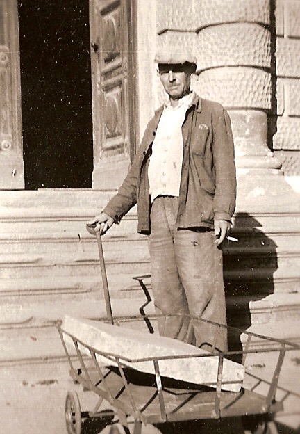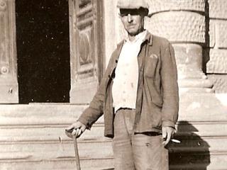 6. ábra (Néprajzi gyűjtemény) - Tóth István a kővel a múzeum előtt. 1961