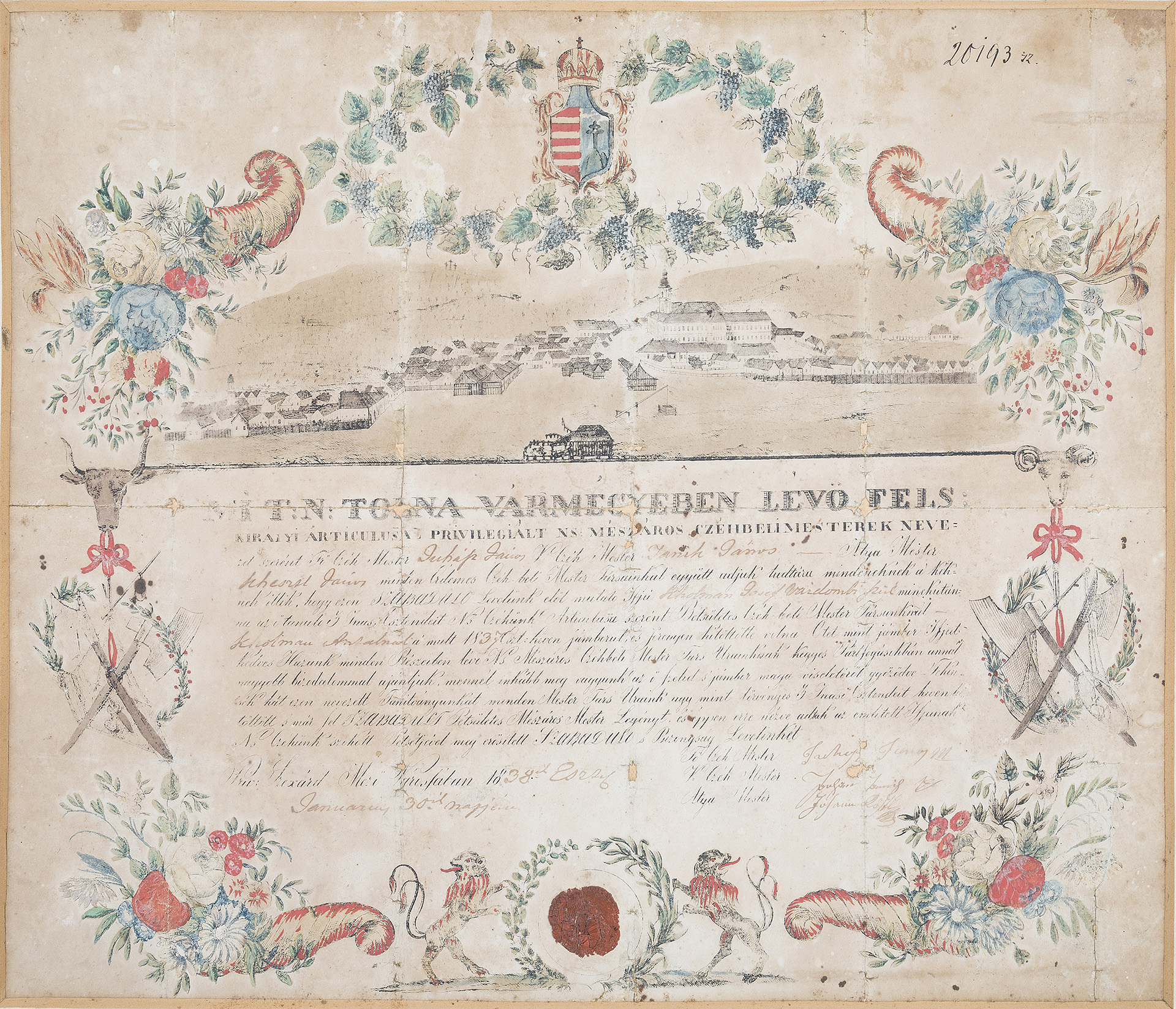 2. ábra (WMMM Történeti gyűjtemény) - Tolna megyei mészáros céh mesterlevele 1838.