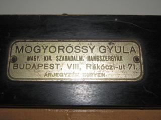 Első pillantásra a harmonikát Mogyoróssy Gyula hangszergyárában (1892-1945) készítették az 1920-as években Budapesten, a Rákóczi u. 71. szám alatt. Mogyoróssy híres volt vonós hangszereiről, cimbalmáról. Az első világháború után olyan hangszerek forgalmazásával is foglalkozott, melyekre igény volt, de ő maga nem készítette, de saját emblémájával látta el. Az 1930-as években gramofonok, rádiók, komplett zenekari együttesek értékesítésével bővítette profilját.