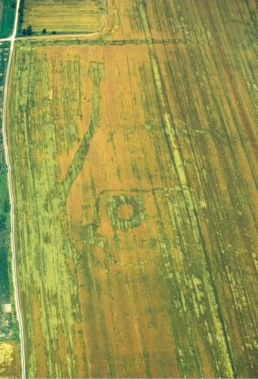 3. Várong–Dari-dűlő középkori lelőhely légi fotója (fotó: Otto Braasch, Pécsi Légirégészeti Téka 17953)