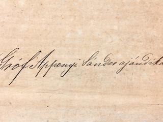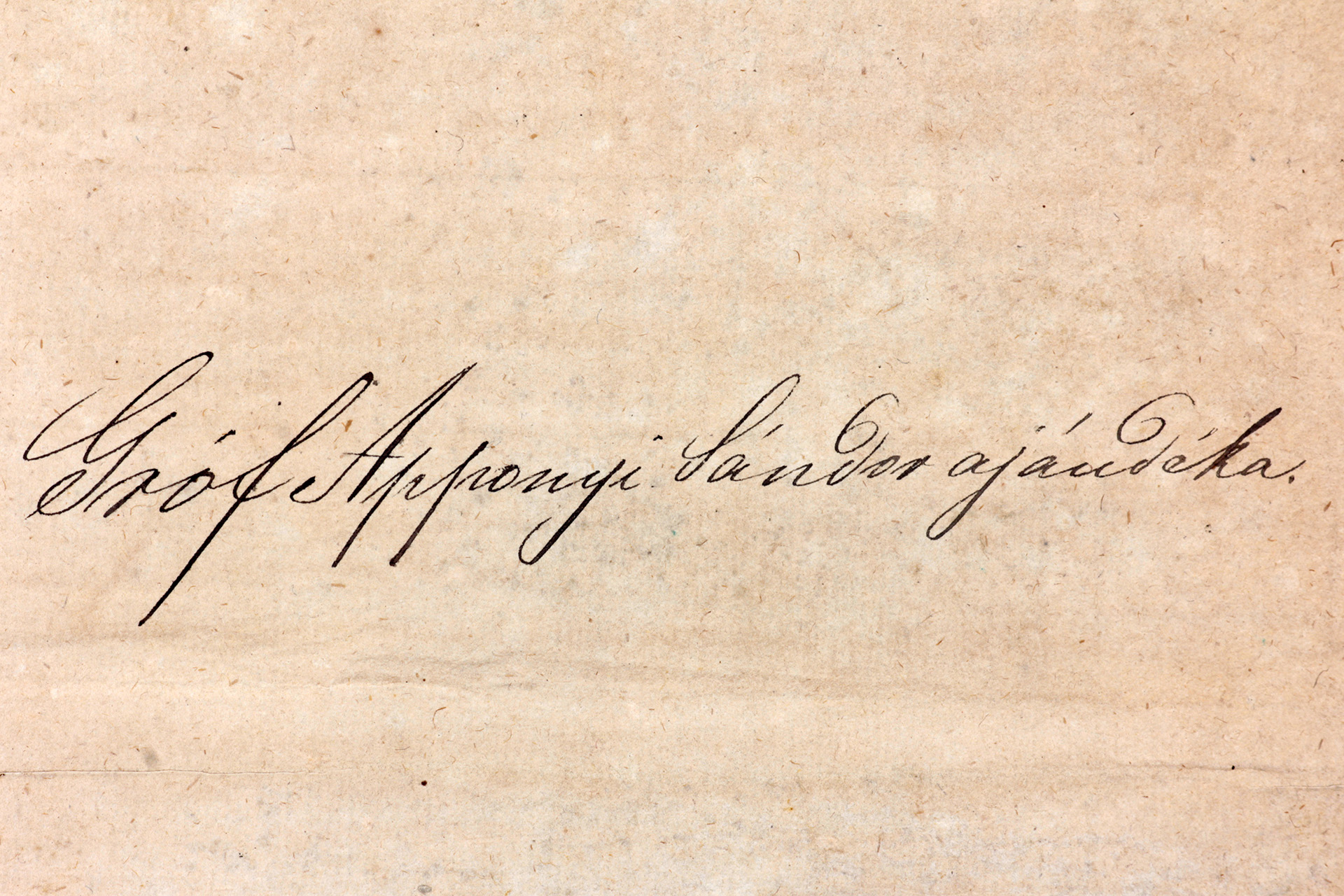 Bibliotheka Granziana” feliratokkal, illetve az első lapon látható kézírásos bejegyzés, miszerint gróf Apponyi Sándor ajándékozta a kötetet Wosinskynak és a múzeumnak.