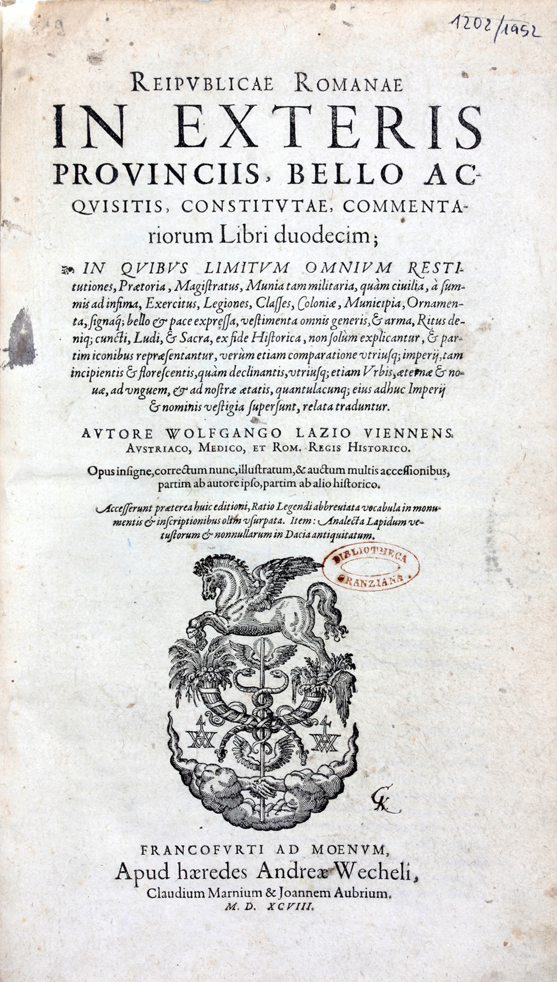 Wolfgang Lazius: Reipublicae Romanae in exteris provinciis, bello acquisitis, constitutae commentariorum libri duodecim