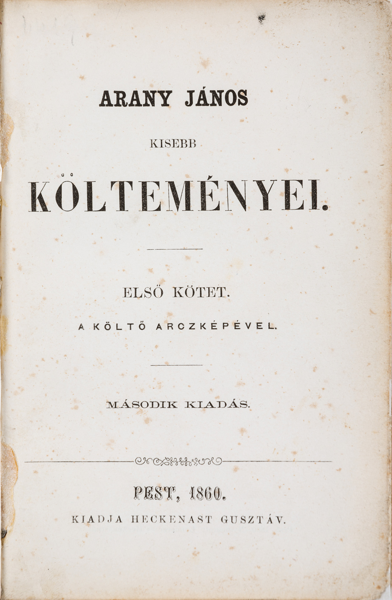 Arany János. Kisebb költeményei. 1-2. kötet egybekötve. Második kiadás. Pest, 1860