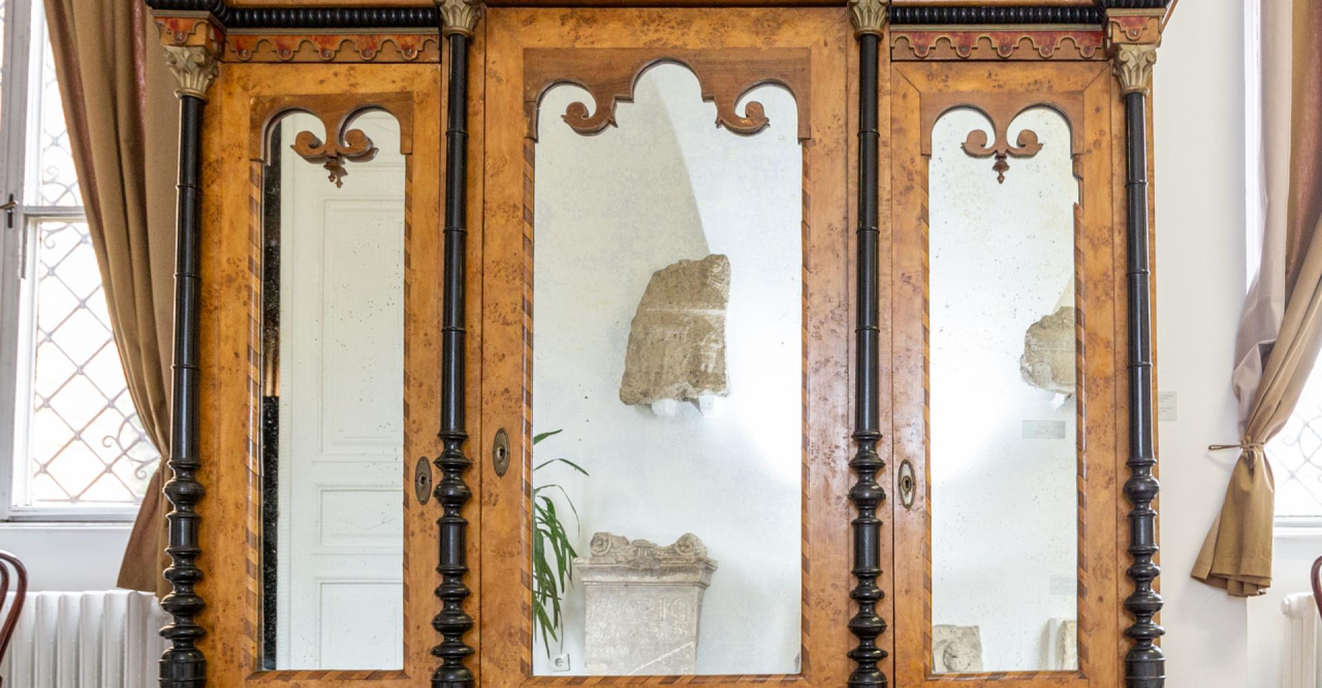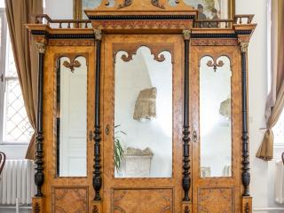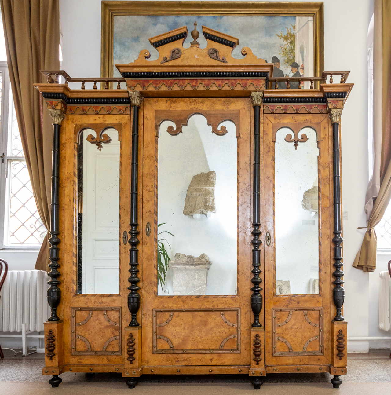 Szeptember hónap műtárgyaként egy a 19-20. század fordulójáról származó, háromajtós, tükrös ruhásszekrényt mutatunk be, mely városi, polgári hatásra készült (1. kép).