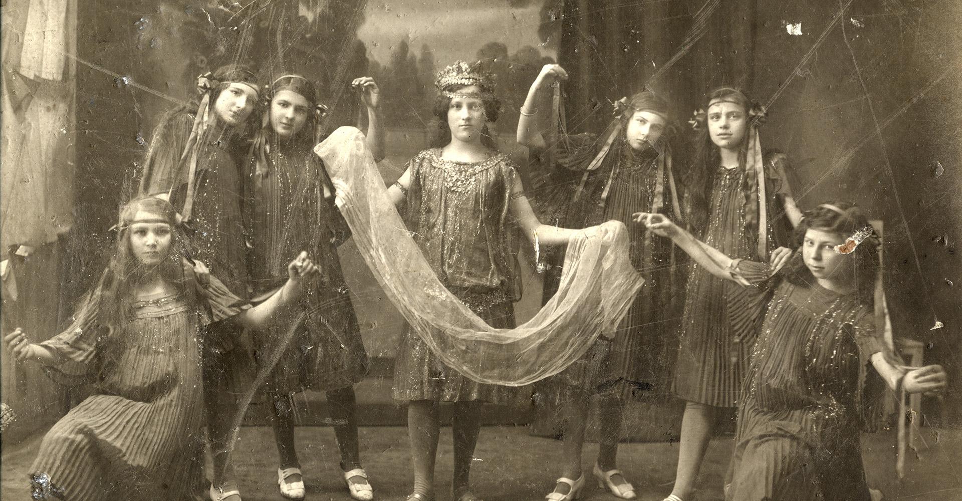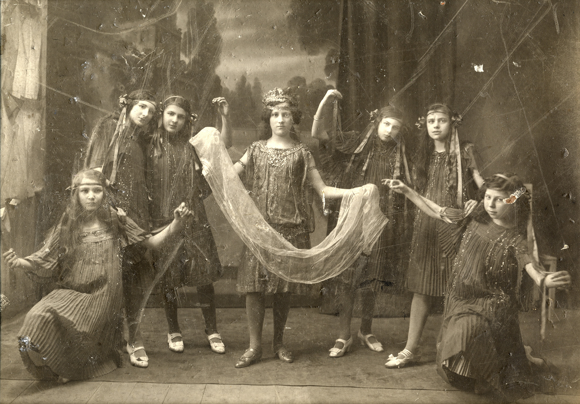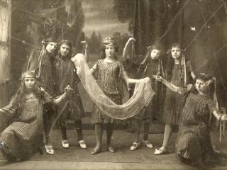 A nap szakaszai allegorikus játék második betétdarabjának élőképét láthatjuk: a Nap: Székely Irma, a Napsugarak: Nemes Margit, Mattioni Eszti, Wallacher Magdus, Plank Ilona, Gunszt Márta, Fröhlich Mariska. A napot megszemélyesítő diáklányon és Mattioni Eszteren kívül a többieket sajnos nem tudjuk név szerint azonosítani.