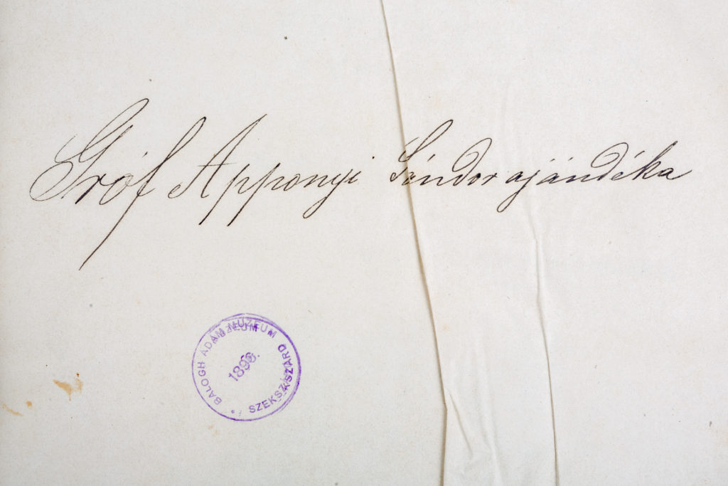 Labore et constantia” (munka és állhatatosság). A könyvet Apponyi Sándor feltehetően Franciaországban vásárolhatta.