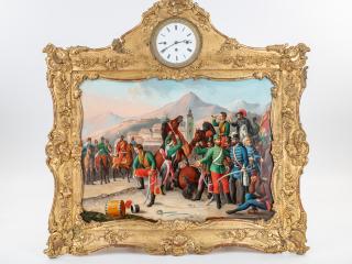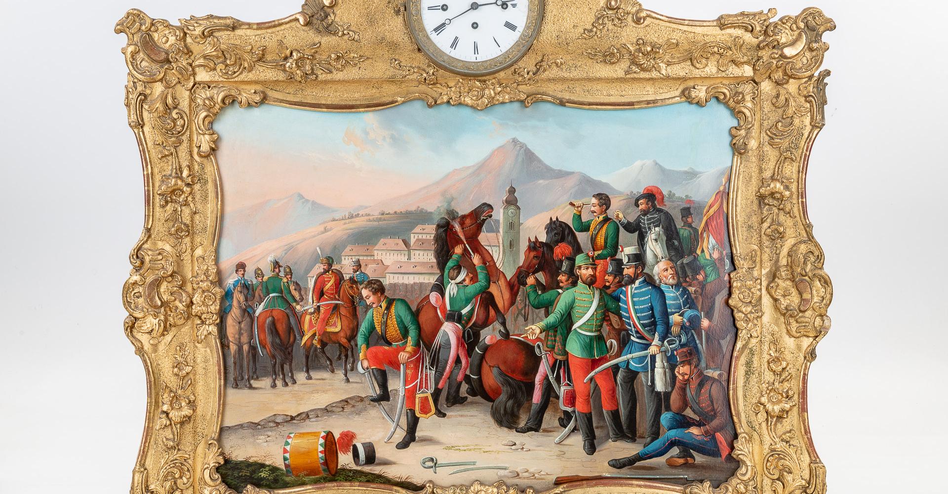 Vitam et sanguinem”-jelenet: az 1741-es pozsonyi országgyűlésen a magyar rendek felajánlották segítségüket Mária Teréziának. Erre a gyűjteményünkben őrzött másik képóra is példát szolgáltat. Kedvelt téma Zrínyi Miklós kirohanásának jelenete, mely Peter Kraft monumentális festménye (1825) után készült metszetek nyomán vált népszerűvé. A magyar történelem dicsőséges napjaiból pedig Árpád pajzsra emelése és Hunyadi Mátyáshoz kapcsolódó események megjelenítésével találkozhatunk. A 19. század második felében, feltehetően inkább a kiegyezés után készülhettek az 1848–49-es szabadságharc eseményeit bemutató óraképek: az egyik téma Buda várának 1849. május 21-i visszafoglalása, a másik pedig a világosi fegyverletétel.