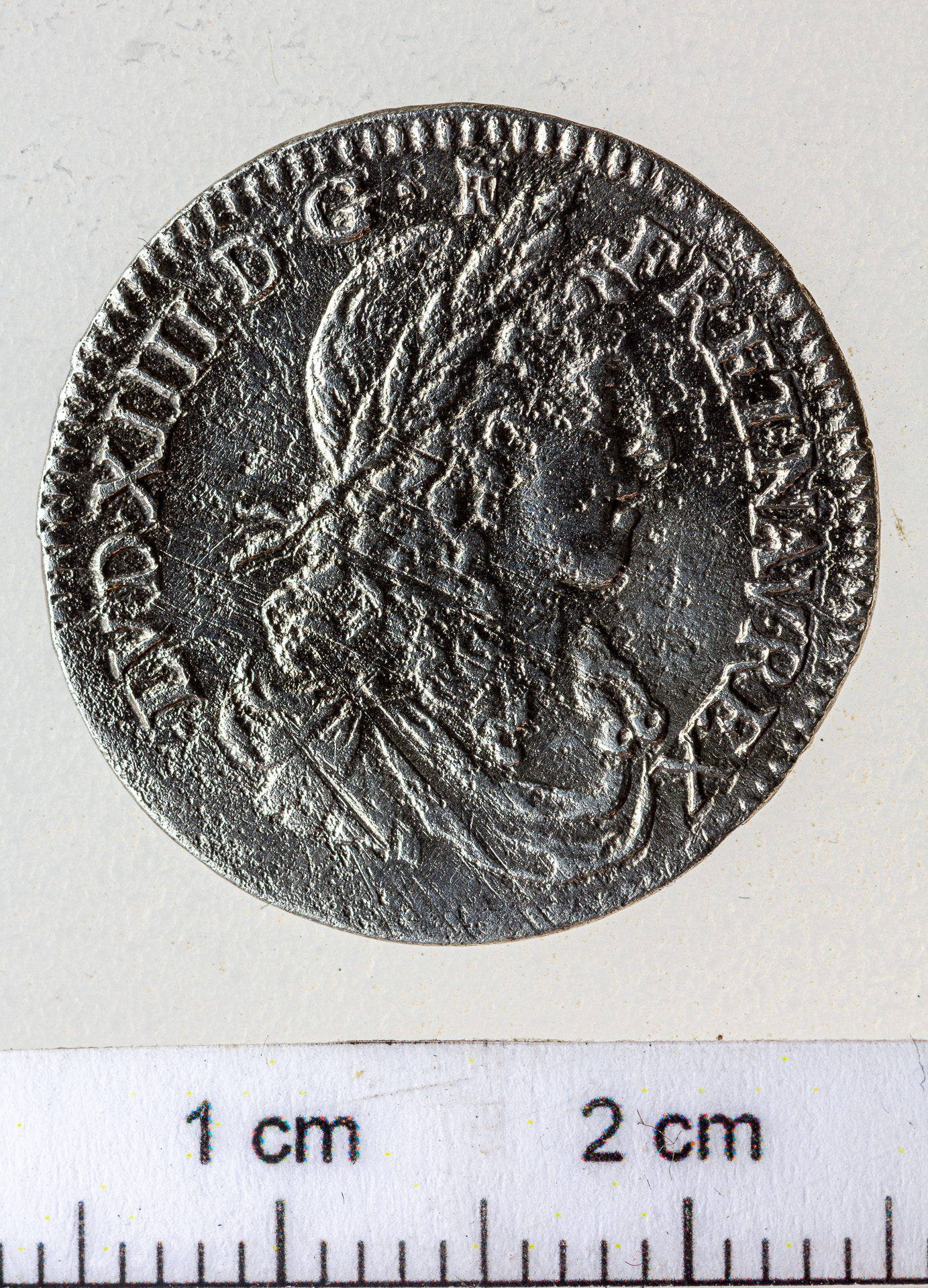 Lajos 2 db ezüstpénze (névértékük ½ écu, verési dátumuk 1660 és 1662)