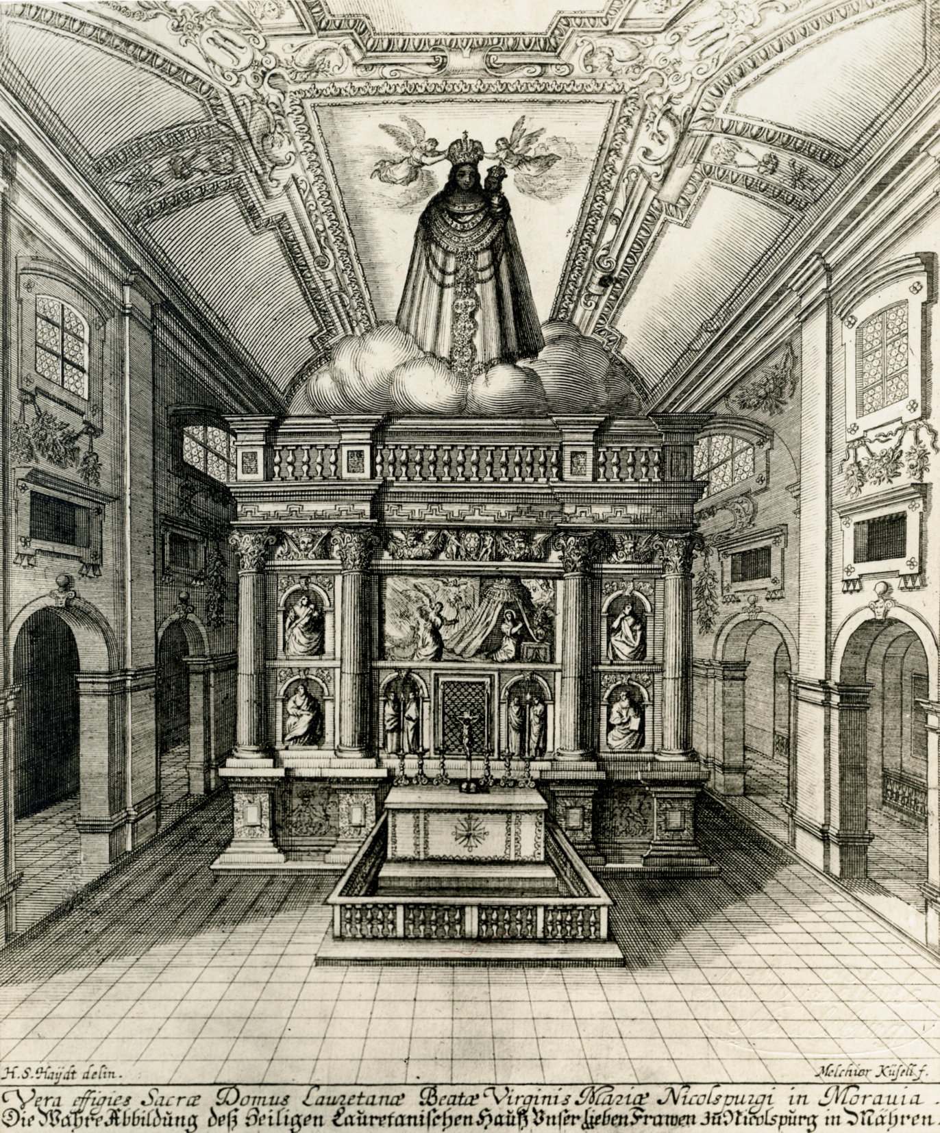 Nikolsburgban (Mikulov) Dietrichstein bíboros indíttatására, a Mária-kultusz iránti személyes tisztelete jeleként – tanulóévei alatt járt is Loretoban – pápai engedéllyel 1623-ban kezdték el építeni a loretoi kápolnát Giovanni Giacomo Tencalla tervei alapján, ahol az eredeti kegyhely Madonnájának másolatát helyezték el. Az iratok alapján két Madonna-szobor is volt, a régebbi, melyet a bíboros hozott Loretoból 1624-ben, a kápolna, a másik a Szent István-templom tulajdonában.