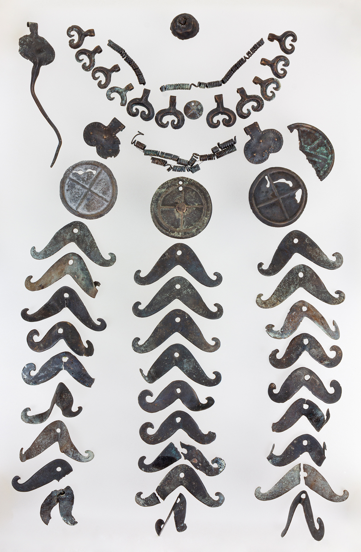 A középső bronzkori mészbetétes edények népéhez tartozó női vezető földberejtett ékszerei és ruházatának díszei