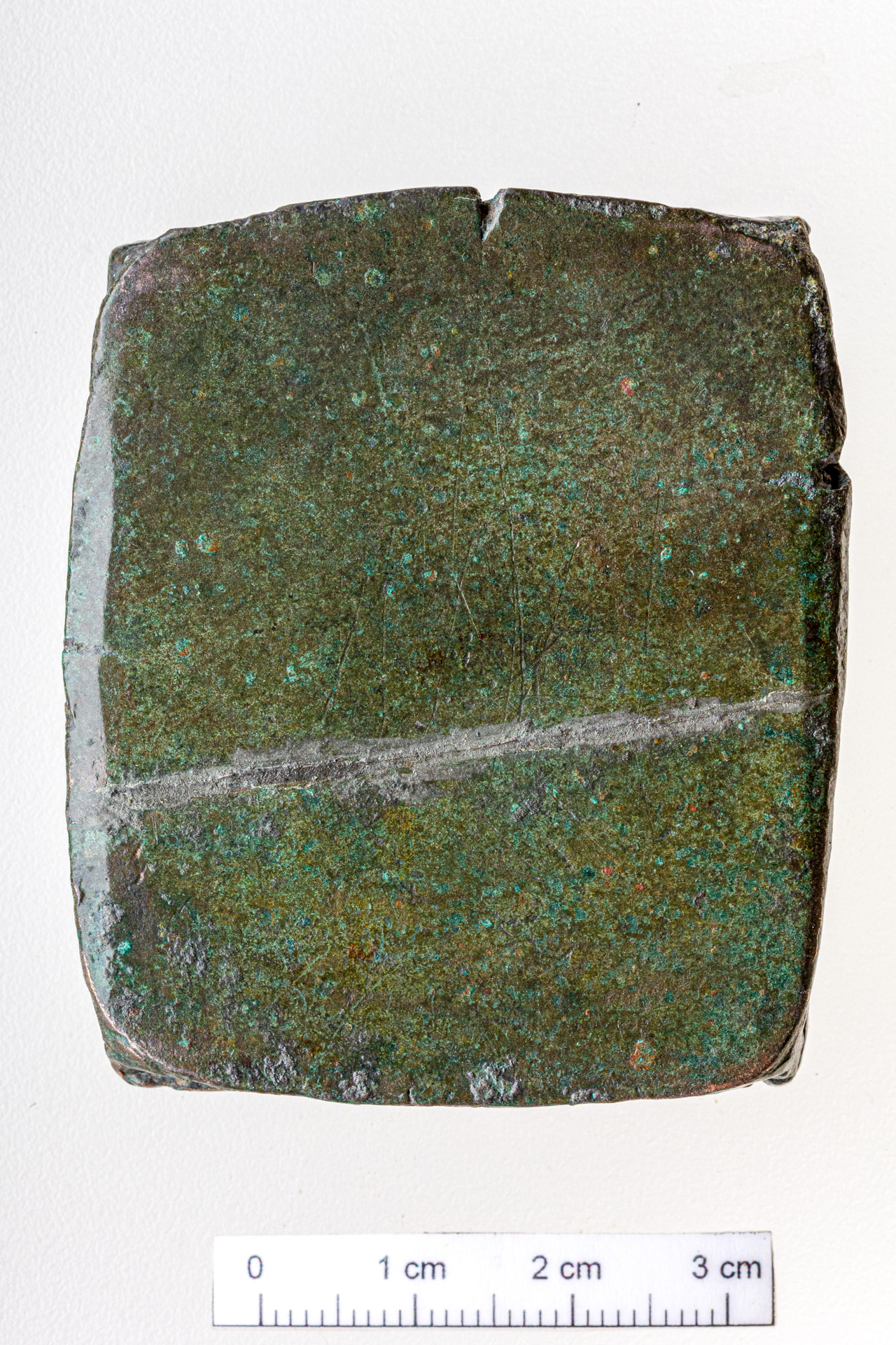 Ajándékozó: Zsiga Zsolt Leírás: téglalap alakú, lapos, bronz préselőtő.