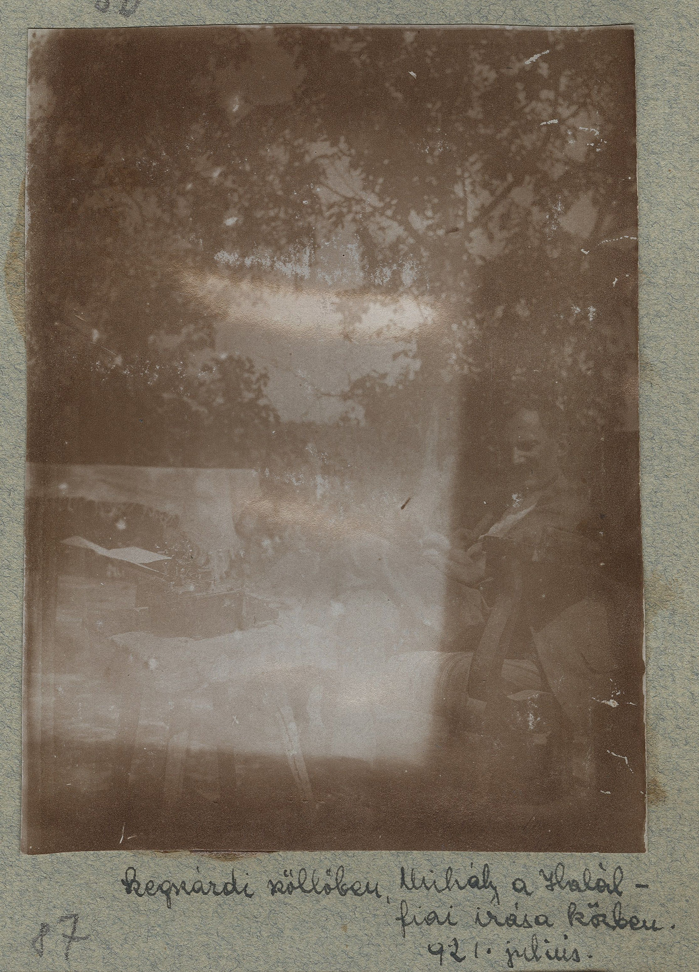 Az előhívott, sérült képek viszont megmaradtak, közülük egyet sikerült restaurálni, amelyen a felirata alapján és Török Sophie visszaemlékezése szerint a költő nagyanyja, „Cenci néni öreg karosszékében ül”, előtte egy fa gyalogszéken az írógépe, háttérben egy csomózott terítővel letakart asztal látszik. Élénknek nem mondható levelezést folytatott ekkor Babits, inkább neki írtak ismerősei és barátai. Ebben a két hónapban Babits Zichy Rafaelnén kívül levelet írt Mikes Lajosnak, a Pesti Napló főszerkesztőjének, Stefan Klein műfordítónak, Komjáthy Aladár költőnek és Fülep Lajos református lelkész-írónak. Gróf Zichy Rafaelné a 20. század első felének ismert, irodalmi ambícióval is rendelkező közszereplője volt. Pallavicini Eduardina (Edina) néven született arisztokrata családban 1877-ben. 1901-ben ment férjhez a Sárszentmihályon birtokos gróf Zichy Rafaelhez, akitől 1925-ben botrányos körülmények között vált el. 1945-ben elhagyta hazáját és lányához költözött Spanyolországba, ahol 1964-ben halt meg. Zichy grófné a Magyar Katolikus Nőegyletek Országos Szövetségének és az országos Katolikus Nővédő Egyesületnek volt az elnöke, az 1934–1944 között megjelenő Asszonyok-Leányok katolikus nők folyóiratnak főszerkesztője volt.