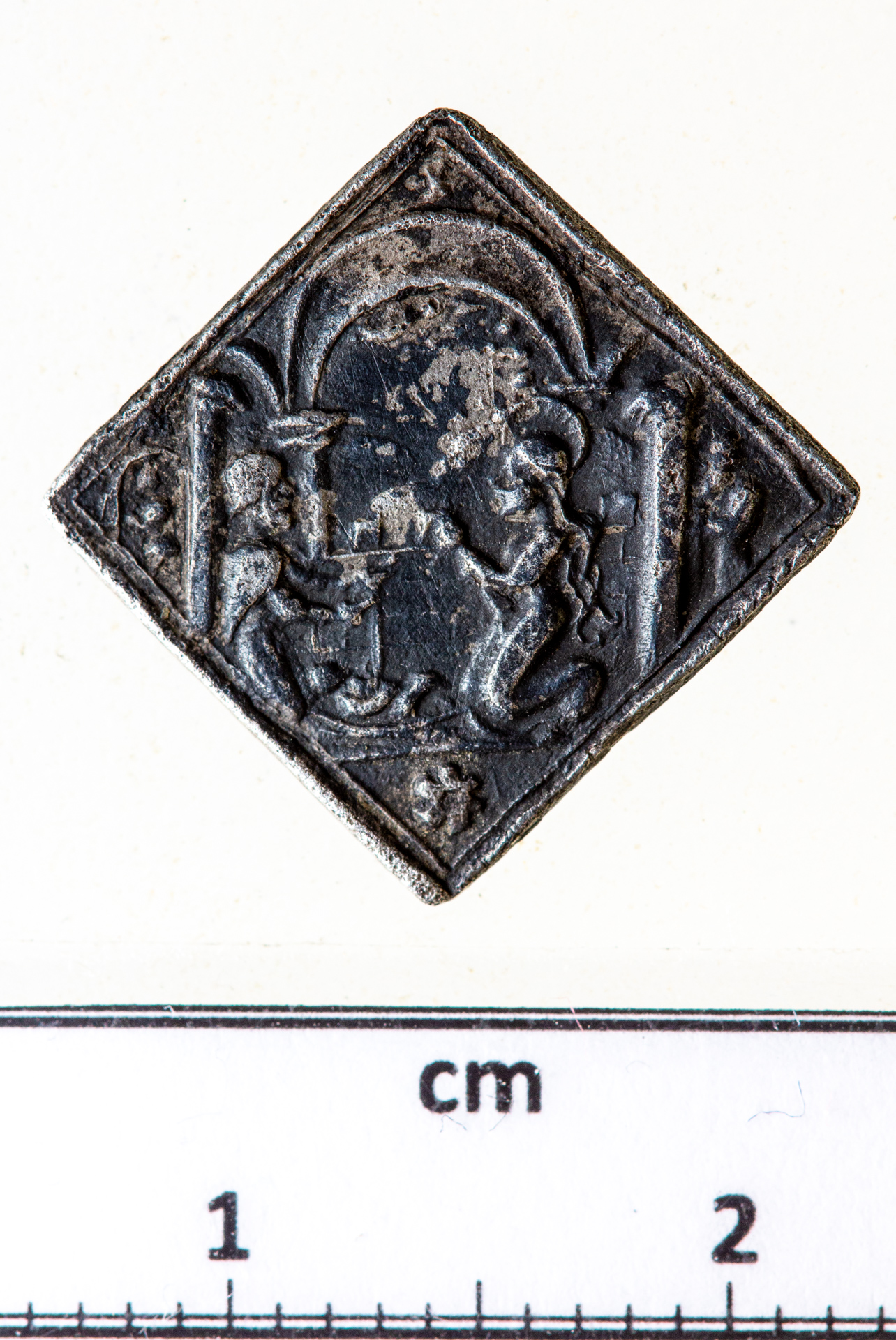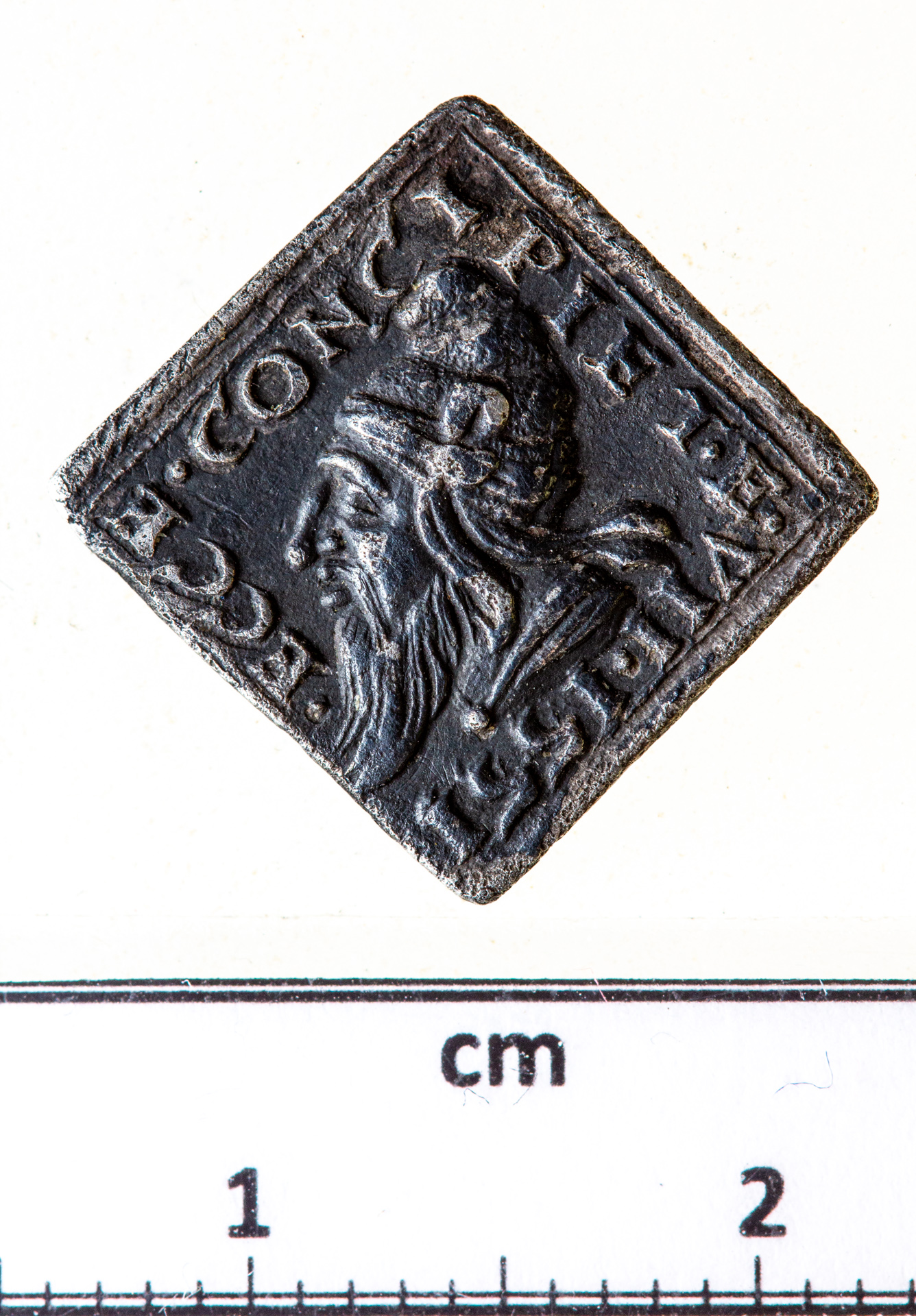 Régészeti gyűjtemény, gyarapodási napló száma: 457-2022. Méret: 12 mm x 12 mm, súly: 1,5 g Lelőhely: Fadd-Juhakol A mai Fadd középkori előzményének tekinthető lelőhelyről műszeres leletfelderítéssel előkerült apró, ezüstből készült csegely (négyzet alakú érme) előlapján Ézsaiás próféta balra forduló mellképe látható hegyes szakállal, frígiai sapkában. A körirat: ECCE.CONCIPIET.E.VII.1551. A szöveg szintén az ószövetségi prófétához kapcsolódik, hiszen Ézsaiás könyve 7. fejezetének (ezt a köriratbeli „E.VII.” is egyértelműsíti) 14. versére utal, aminek vonatkozó mondata teljességében latinul így hangzik: „Ecce virgo concipiet et pariet filium et vocabitur nomen eius Emmanuel”.