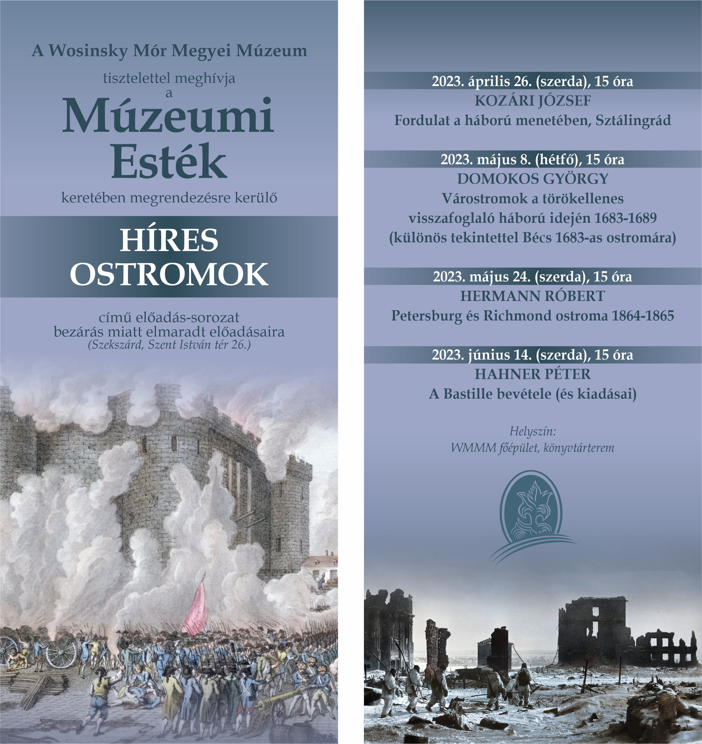 A Wosinsky Mór Megyei Múzeum az elmúlt időszak elmaradt programjait bepótolja. Várjuk a kedves érdeklődőket szeretettel!