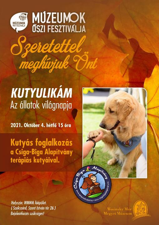 Kutyás foglalkozás a Csiga-Biga Alapítvány terápiás kutyáival. Helyszín: WMMM főépület. Bejelentkezés szükséges!