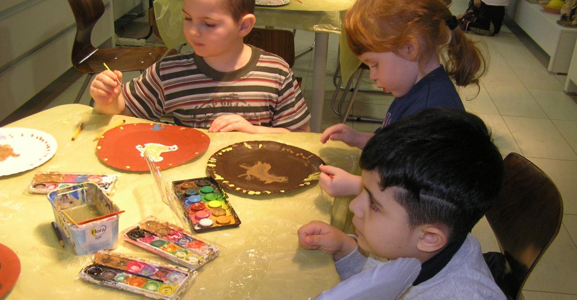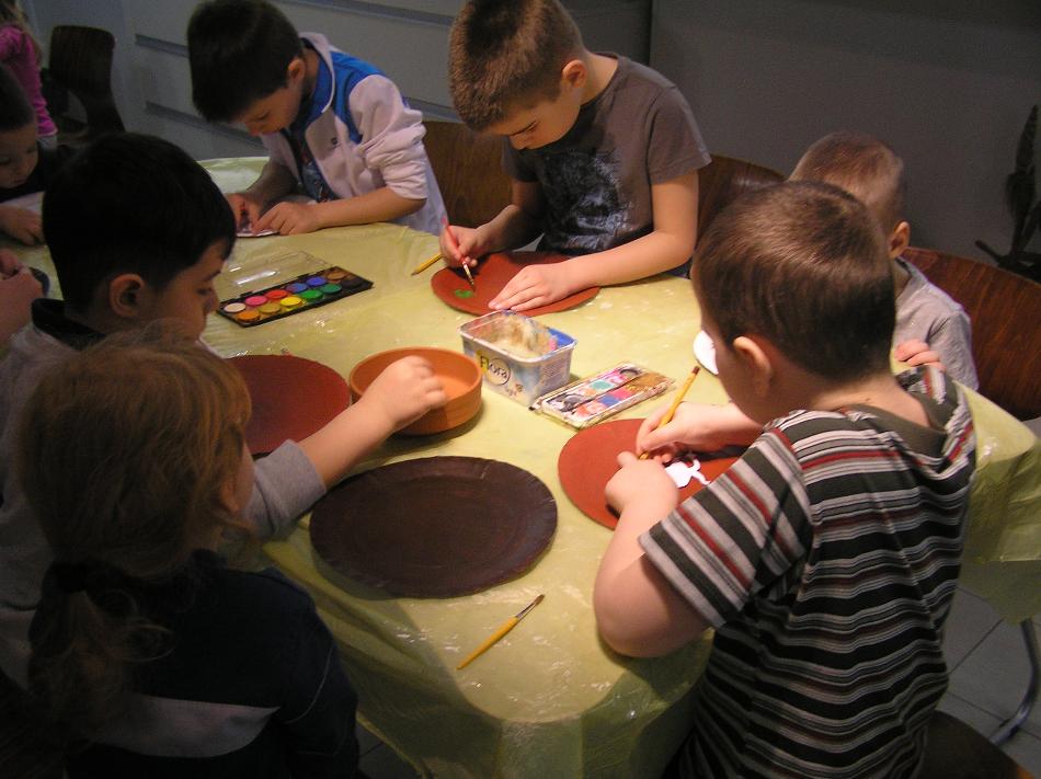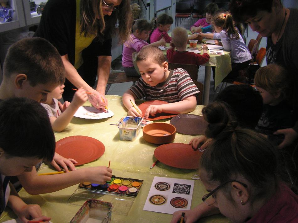 A Látványtár(gy) tematikus sorozatban sárközi motívumokkal papírtányérokat festettek a bátaszéki óvodások március 16-án a WMMM központi épületében.