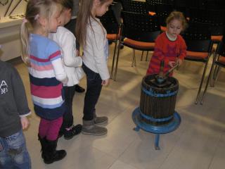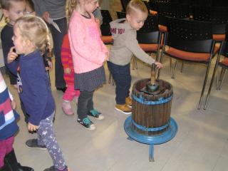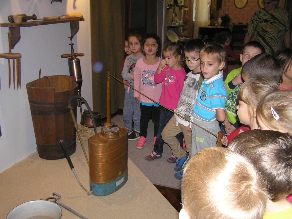 A helytörténeti kiállítás présházat és tanyabelsőt bemutató egységéhez kapcsolódva szervezett Őszi betakarítás. A szüret című foglalkozás vidám résztvevői a WMMM központi épületében.