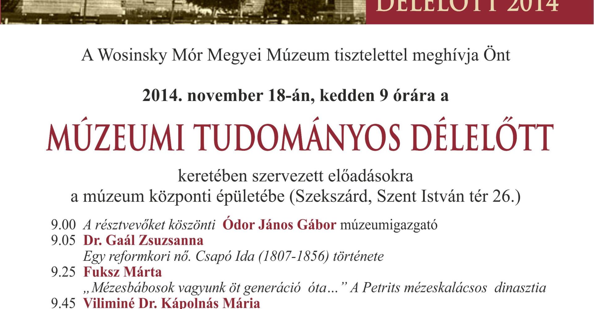 Minden kedves érdeklődőt várunk tisztelettel múzeumunk éves tudományos beszámolójára!