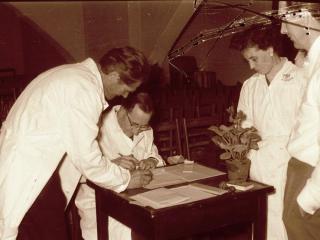 Szekszárdon 1961. október 17-én rendezett először térítésmentes véradónapot a Vöröskereszt járási titkársága. Nagy volt a nyüzsgés a városi művelődési házban, sokan jelentkeztek a véradásra, de nem mindenki felelt meg a kritériumoknak. A véradónak be kell töltenie a 18. életévét, de nem lehet több, mint 65 éves. Két véradás között el kell telnie legalább 56 napnak és fontos szempont, hogy egészségesnek kell lennie. Végül 173-an bizonyultak alkalmasnak. A régi rendszeres véradók közül számosan döntöttek úgy, hogy ezután térítés nélkül is adnak vért évente egyszer, de nagyon sokan voltak első véradók a rendezvényen. A 168 első véradó közül ötvenen kerültek fel a véradó állomás listájára, mivel aláírták a nyilatkozatot, hogy ezentúl rendszeresen adnak vért. A véradás szervezetten folyt, előre ütemezett sorrend szerint érkeztek a potenciális donorok az üzemekből, hivatalokból és az iskolákból. A művelődési ház nagytermében felvették a jelentkezők személyi adatait és válaszolniuk kellett néhány kérdésre az egészségi állapotukkal kapcsolatban. Miután aláírták a nyilatkozatot, hogy nem hallgattak el semmit, következett az alapos orvosi vizsgálat és a vércsoport megállapítása. Miután a jelentkező alkalmassága bizonyítást nyert, kerülhetett sor a véradásra. A művelődési ház arra kijelölt helyiségébe már csak fehér köpenyben és szájkendővel léphettek be a véradók. Egyszerre három-négy embertől vettek vért az orvosok és ápolónők. A nap végére a 173 véradó összesen 47 liter vért adományozott önkéntesen és térítésmentesen, hogy ezzel önzetlen segítséget nyújtsanak embertársaiknak.