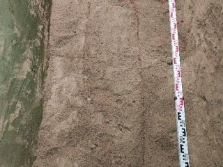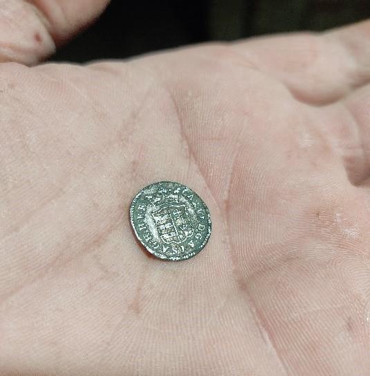 A sírgödör földjéből egyebek mellett III. Károly (1711–1740) denár címletű, évszám nélküli pénzérméje került elő (5. kép), igazolva, hogy a sírt a 18. század elején ásták. A gödör falában 20 cm mélyen két, jól elkülönülő, pár centiméter vastag habarcsos járószintet lehetett megfigyelni (6. kép), amelyeket a sír kiásásakor átvágtak: ezek a középkori plébániatemplom padlói voltak. 180 cm-es mélységben kirajzolódott a koporsó fedelének fakorhadéka (7. kép). A sírgödör bontásával lefelé haladva a középkori templom belsejébe eltemetett két sír maradványát, a gödör falából kilógó csontjait is meg tudtuk figyelni, amelyeket szintén az 1725-ös temetkezéssel bolygattak meg.
