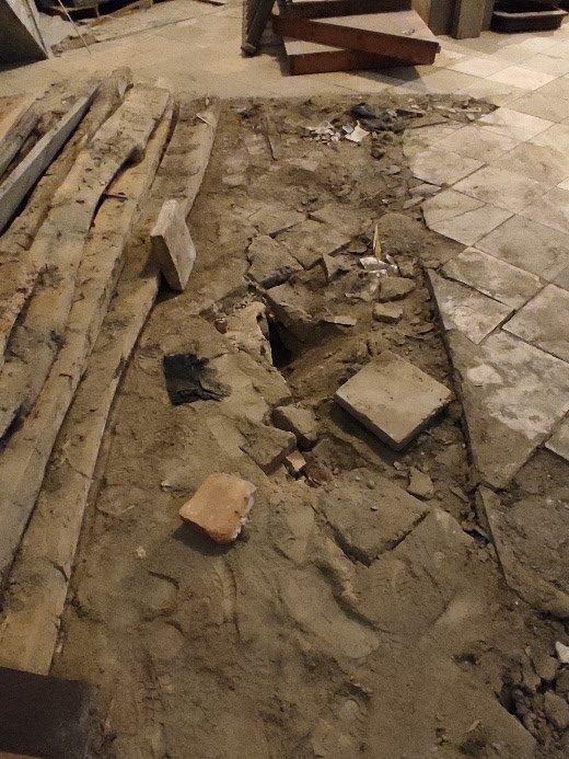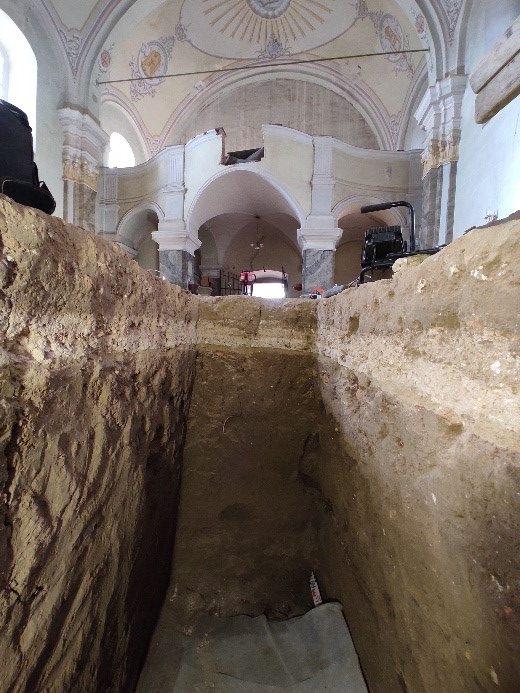 2022 végén kezdődött az 1734 és 1742 között épült tamási barokk plébániatemplom felújítása. Mivel helyén a középkorban is templom állt, ezért a padló – a padok alatt padlótégla, a többi helyen pedig 1785-ben lerakott kőlapok – felszedése régészeti szakfelügyelet mellett zajlott (1. kép) a templomhajóban.