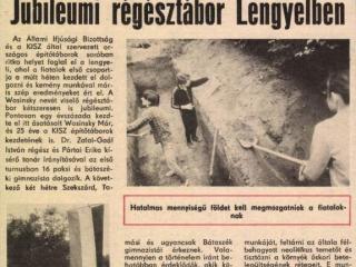 Gaál István –az 1980-as években mondhatni szokásos módon – a KISZ által szervezett építőtábori formát használta fel több éven keresztül arra, hogy a feltáráson szükséges munkaerőt biztosítsa. Iháros Ibolya „Irány az építőtábor” című cikkében megemlíti a „nagy táborok” mellett az akkor még „Béri Balogh Ádám Múzeum által üzemeltetett”, Lengyelen szervezett, „nem jelentős” létszámot foglalkoztató régészeti tábort is.[3] (Szakmánk védelmében jegyzem meg, hogy egy ilyen régészeti tábort épp a feladatok jellege miatt nem lehet túl nagy létszámmal „üzemeltetni”.) Nem elhanyagolható azonban az a momentum sem, hogy a Béri Balogh Ádám Múzeum ebben az időszakban is szervezett középiskolások számára történelmi szakkört, amely keretében Gaál István is tartott előadásokat, valamint úgynevezett szemináriumokat érdeklődő középiskolások számára. Ezek a foglalkozások elméleti síkon mintegy előkészítették a résztvevőket a nyári munkára, a további ismeretszerzésre.[4] (3. melléklet) Az 1982.-évi ásatási szezonról több tudósítás is megjelent a korabeli sajtóban. A Tolnai Népújság június 23-ai számában „Jubileumi régésztábor” címmel[5] képes tudósítással számolt be az ásatásról. Az ásatás a cikk szerint kétszeresen is jubileumi volt, hiszen épp száz évvel Wosinsky Mór ásatása után indult a munka, valamint az építőtáborok szervezésének is már éppen huszonöt éve volt. A beszámoló fontos része volt az, hogy megfogalmazta az ásatásvezető Zalai-Gaál István célkitűzését, a Wosinsky Mór által megkezdett neolit temetők, települések kutatásának folytatását. (1. melléklet)
