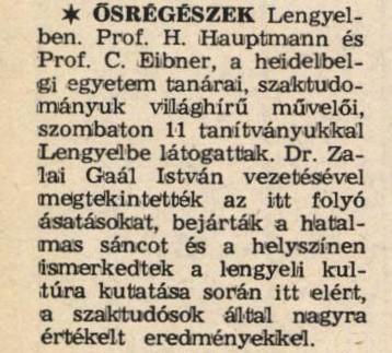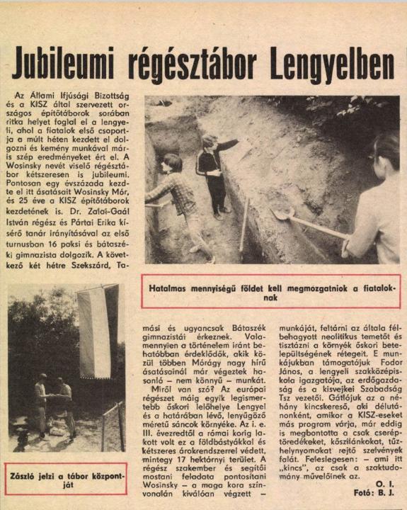[6] O. I. [Ordas Iván]: A lengyeli ásatótábor eredményei. Fotó: B. J. [Bakó Jenő] Tolna Megyei Népújság 1982. július 20. 8. oldal.