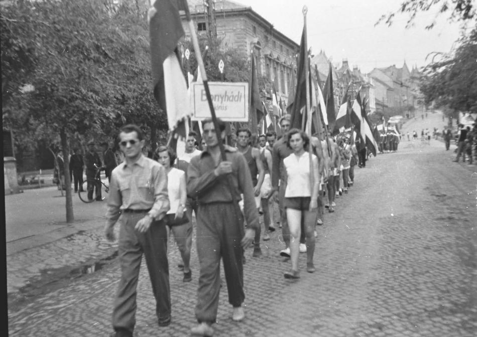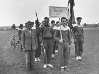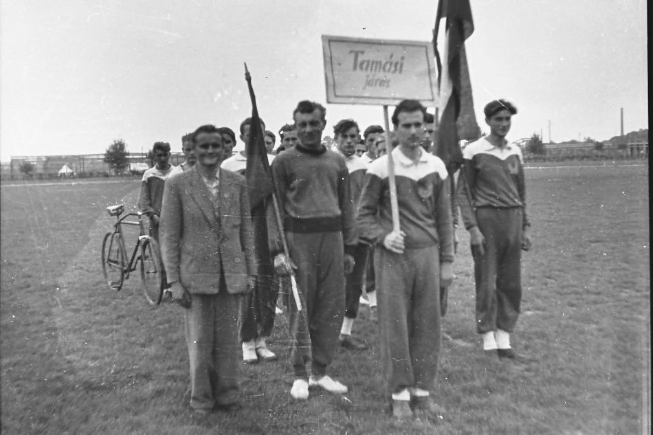 Nyakas István sportfotóiból Tolna megyei életképek rovatunkba a Falusi Dolgozók V. Szpartakiádjának járási és megyei döntőjén készült felvételek közül válogattunk néhányat. Talán a mai fiatalok fülének szokatlanul cseng a szpartakiád szó, ezért mielőtt a képekre térnénk, nézzük meg, mit is jelent ez a kifejezés. A szpartakiád látványos sportünnepség volt a pártállami időkben, amelyet tömegek részvételével rendeztek nagyobb területi egységek (járás, megye, ország) szerint. Maga a kifejezés az orosz Szpartakiada szó átvétele, amelyet a Szpartak (Spartacus) névből képeztek. Spartacusra úgy tekintettek a szocialista országokban, mint az osztályharcos eszme korai bajnokára. Sok egyéb területhez hasonlóan a sportot is állami irányítás alá vonták 1945 után Magyarországon. A Magyar Dolgozók Pártjának alakuló kongresszusán 1948-ban döntöttek a sport és a testnevelés átalakításának kérdésében is. A pártvezetés a sportot és a testnevelést a kommunista nevelés alapjának tekintette, és elsősorban honvédelmi szempontból tartotta fontosnak. A tömegsportot – szovjet mintára – igyekeztek mozgalommá szélesíteni, emellett kiemeltté vált az élsportolók támogatása. Ez a kettősség jellemezte az MDP sportpolitikáját, amelynek vezetői felismerték és igyekeztek felhasználni a sportsikerek hatalmas propagandaértékét.
