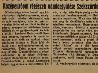 A Tolnamegyei Ujság „Középeurópai régészkongresszus tagjai Szekszárdon” címmel tudósította az olvasóit a konferencia itteni programjáról. Az esemény fontossága kiderül abból is, hogy Szekszárd és a vármegye vezetői látták vendégül a konferencia résztvevőit.