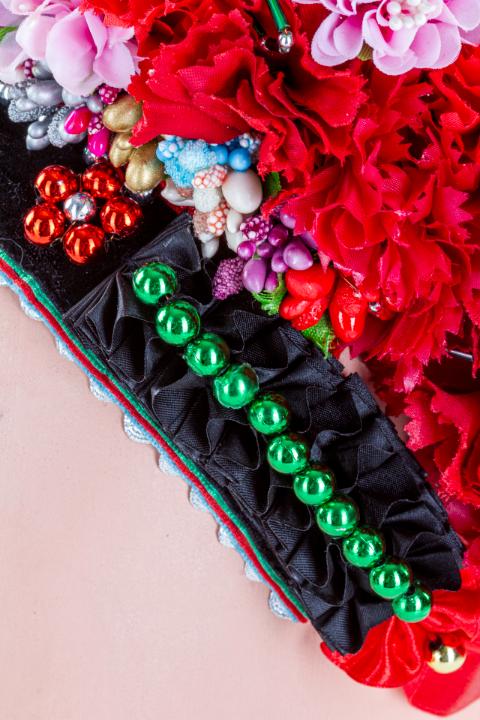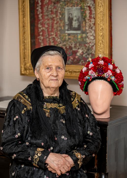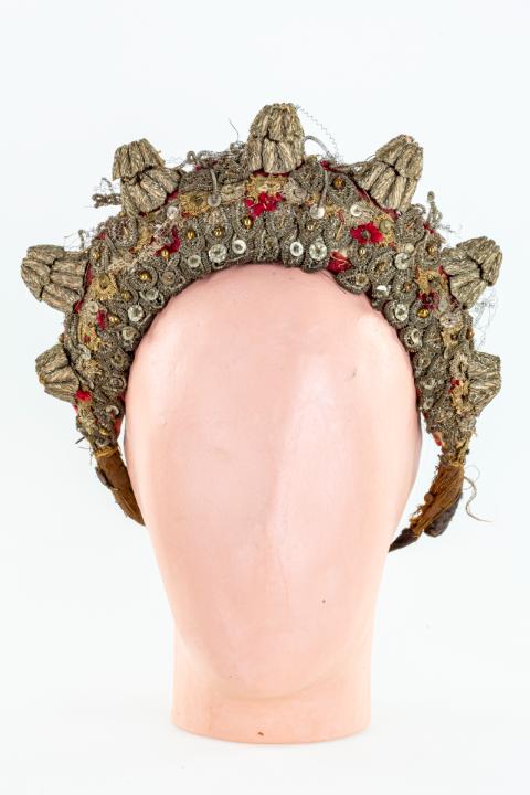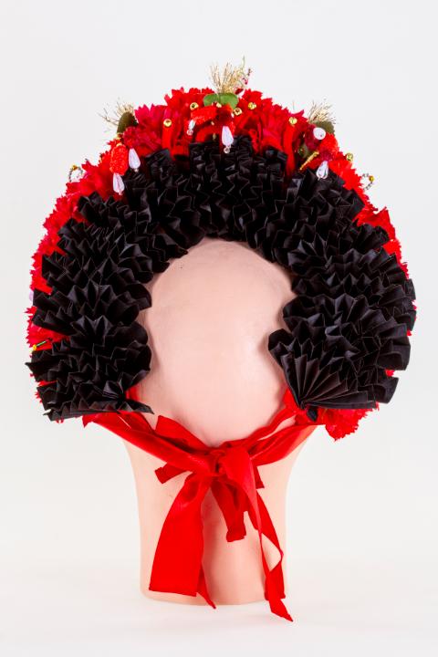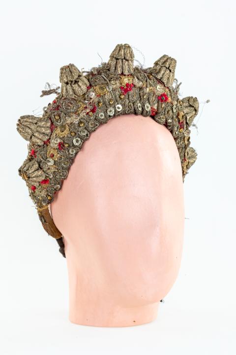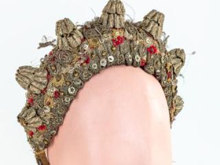 A párta minden apró darabja egyesével készül el, így nemcsak lassú, precíz munkáról van szó, „de az ember keze egy idő után megérzi a sok vágást, drótozást, ragasztást.” A sárközi nagybársonyt Minorits Jánosné a múzeum kérésére állította össze, ami 2023-ban került a néprajzi gyűjteménybe. E nagyra becsült műtárgy kiállításával szeretnénk kifejezni köszönetünket és a sárközi népművészet tovább élése feletti örömünket.