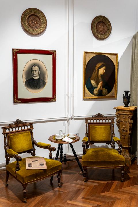 A következő egységben Apponyi Sándor (1844−1925) életútját és a családban hagyománykét öröklődő könyvgyűjtő szenvedélyt megvilágítására párhuzamba állítjuk a dédapa, Apponyi Antal György 1870-ban és Apponyi Sándor 1924-ben készült portréjával, melyek háttérben könyvtárukat láthatjuk. Bemutatunk néhány 16-20. századi kötetet, melyek Apponyi Sándor a múzeum fennállásának első évtizediben tett jelentős könyvadományaiból fennmaradtak. Wosinsky Mór (1854−1907) papi pályája és régészeti-, tudományos tevékenységnek ismertetése mellett személyes tárgyaiból is bemutatunk néhányat: Mint például útlevelét, ami az 1887-es keleti útjához kötődik, fuvoláját, imakönyvét, pipagyűjteményéből egy konstaninápolyi csibukot és az ősmagyar figurákat ábrázoló tajtékpipát is. Továbbá berendeztünk a szekszárdi plébánián lévő lakását megidéző enteriőrt is.