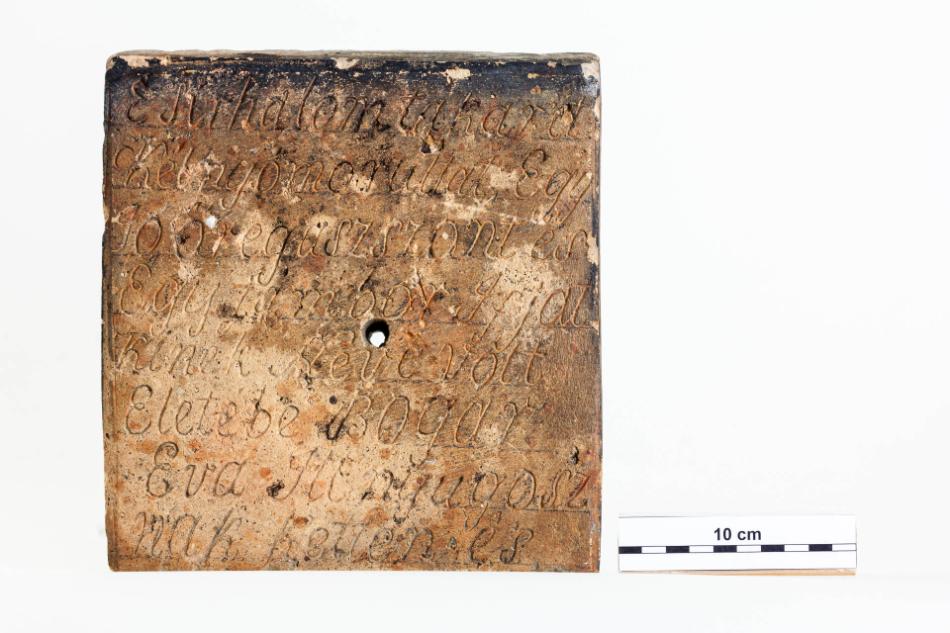 Voltak olyan módon elkészített fejfák is, melyek felirata nem magára a fejfára volt felvésve, hanem egy külön deszkára, vagy mint esetünkben, téglába volt bekarcolva, és azt erősítették fel a fejfára. Az ilyen, fazekassal- vagy téglaégető mesterrel készített felirat praktikusabb volt, az időtállósága miatt.
